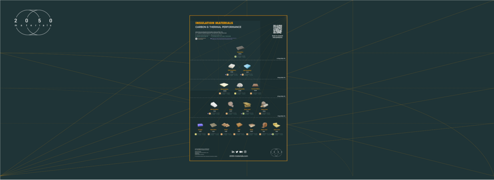2050 Materials worked on a practical guide for architects and designers aiming to navigate the sustainable building landscape. Our Illustrated Guide to Insulation Materials offers a visual guide to understanding the carbon and thermal performance of insulation materials.
